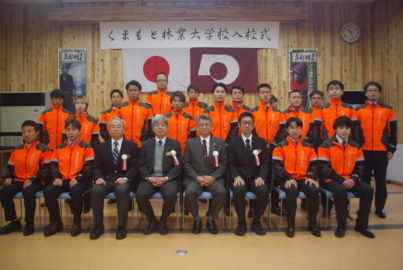 令和2年(2020年)4月13日(月曜日)に熊本県林業研究・研修センター(森創館)で、くまもと林業大学校【長期課程】の入校式が行われ、2期生として県北校14名、県南校6名の計20名が入校しました。