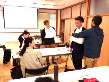 林業はケガが多い仕事です。すぐに対処できるように、救急救命の技術を学びます。