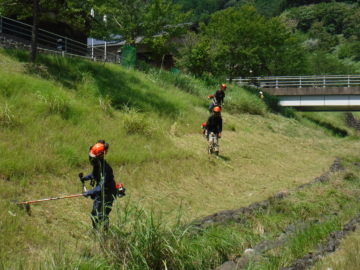 これまで平坦な場所での実習が主でしたが、徐々に傾斜地での下刈り実習も多くなります。